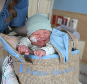 Happy Easter! I know this is not where you expected to be this Easter, but here you are. It’s hard having your baby in NICU, but particularly on a special day such as Easter. Perhaps this is the beginning of a long NICU journey, or perhaps your NICU journey is almost over and your baby is soon going home, or perhaps you are scared of so many unknowns. Whatever you are facing this day…fear, sadness, anxiety, weary exhaustion, joy, or hope…I pray that you don’t lose sight of Jesus, that you are fixing your eyes, your heart, your prayers on Him. He promises that He will never leave us or forsake us, and that He will be with us whatever we face, that He is near to the brokenhearted, and that we are His beloved. In Zephaniah 3:17, He says: “The Lord your God is with you, He will quiet you with His love, He will rejoice over you with singing.” Wow! He is with you, He can bring peace, and He rejoices over you with singing!